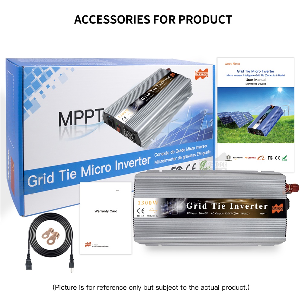 • Mars Rock 1300W 18/36V Grid-Tie Micro Inverter for Solar Systems High Efficiency